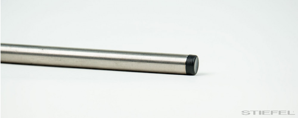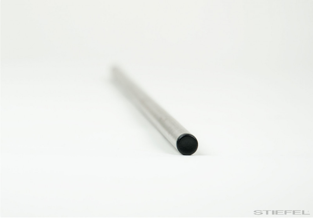 Rozsdamentes acélból készült tartórúd, műanyag kupakkal ellátott végekkel.