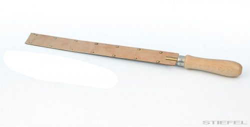 Szegecselt sárgaréz és vaslemez szalagok, fogantyúval. Hossz: 270 mm, szélesség: 30 mm.