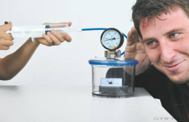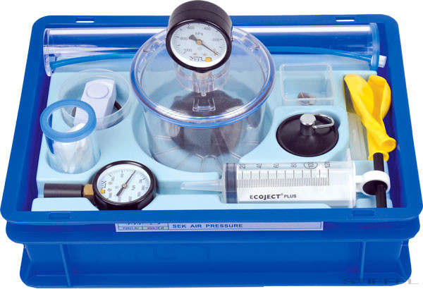 Diákkísérleti készlet dobozban. Főbb témák: A magdeburgi féltekék, légnyomás mérése, a légnyomás hatása - a víz 60 °C-on forr, vákuum, a hang terjedése levegőben és vákuumban, Boyle–Mariotte törvény, a levegő súlyának meghatározása.
