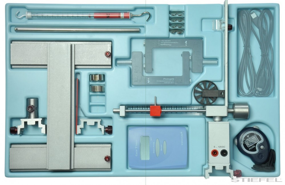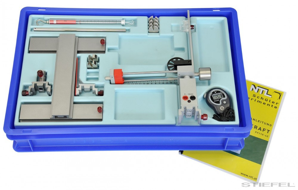 Diákkísérleti készlet dobozban. Főbb témák: A centrifugális erő függése a tömegtől, A centrifugális erő függése a forgási sugártól, A centrifugális erő függése a szögsebességtől.