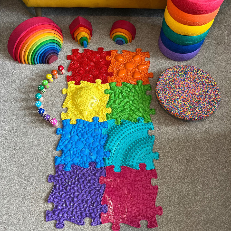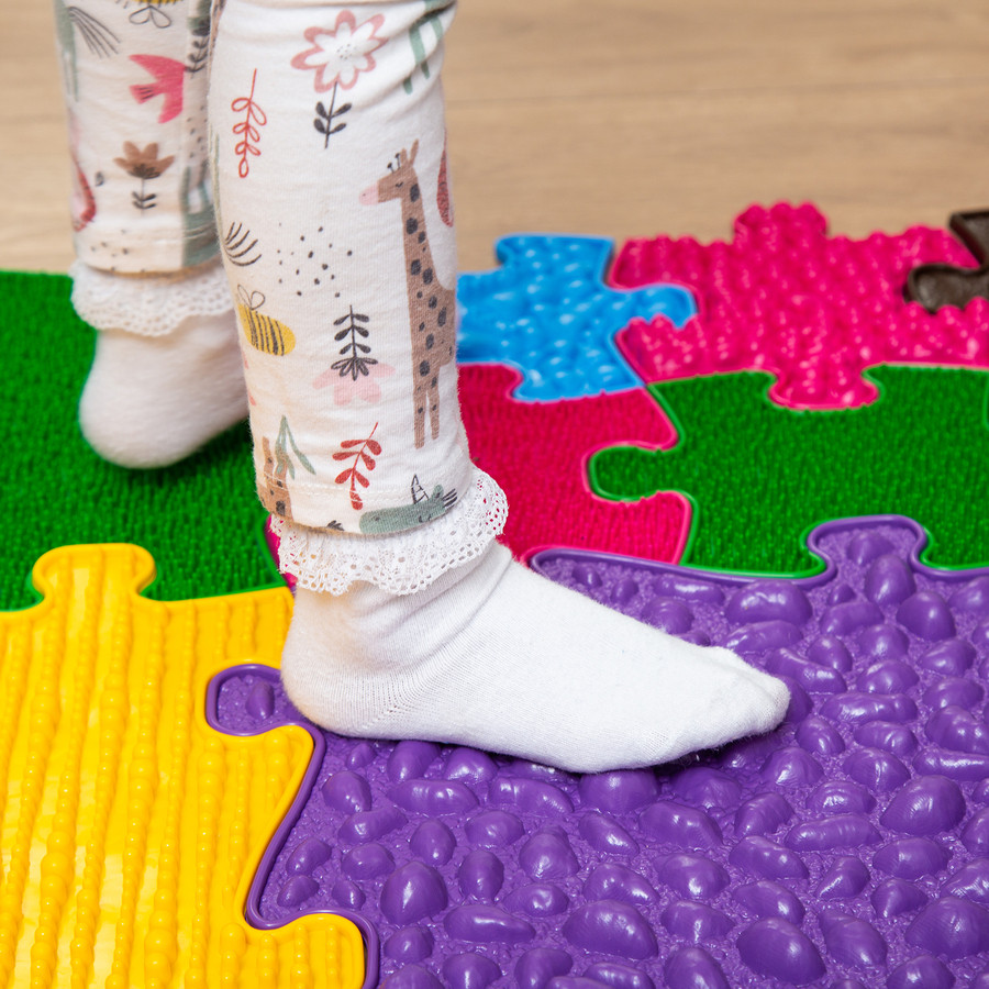 Változatos felületeivel ösztönzi a szenzoros felfedezést, fejleszti a lábboltozatot, egyensúlyt és testtudatot. A 8 darabos ortopédiai szenzoros szőnyegkészlet ideális választás mozgásfejlesztéshez, propriocepcióhoz, valamint kéz- és láberő erősítéséhez.