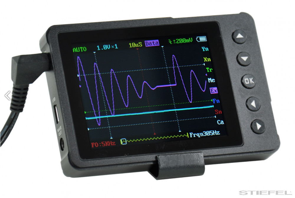 Digitális mini oszcilloszkóp osztálytermi mérési célokra. A robusztus, részben fémből készült háznak, a kis méretnek, és az ebből adódó könnyű kezelhetőségnek köszönhetően ez a készülék diákok számára is egyszerűen használható.