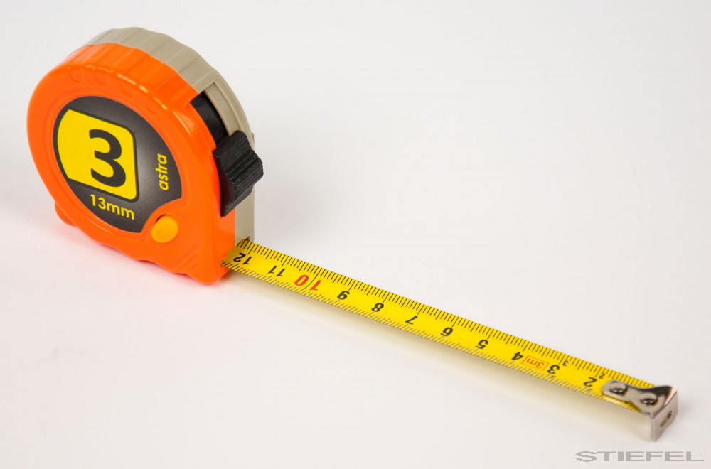 Acél mérőszalag cm-mm beosztással. Műanyag tokban, zárral. Tok méretei: 60 x 60 mm.