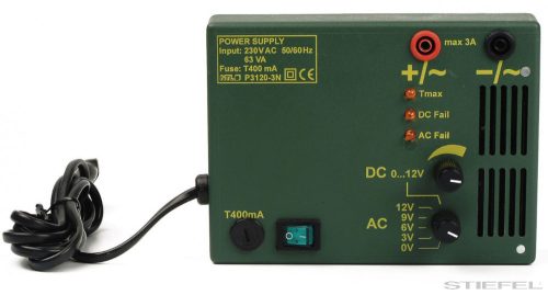 • 0 - 12 V DC (stabilizált, folyamatosan változatható (max. 3 A))