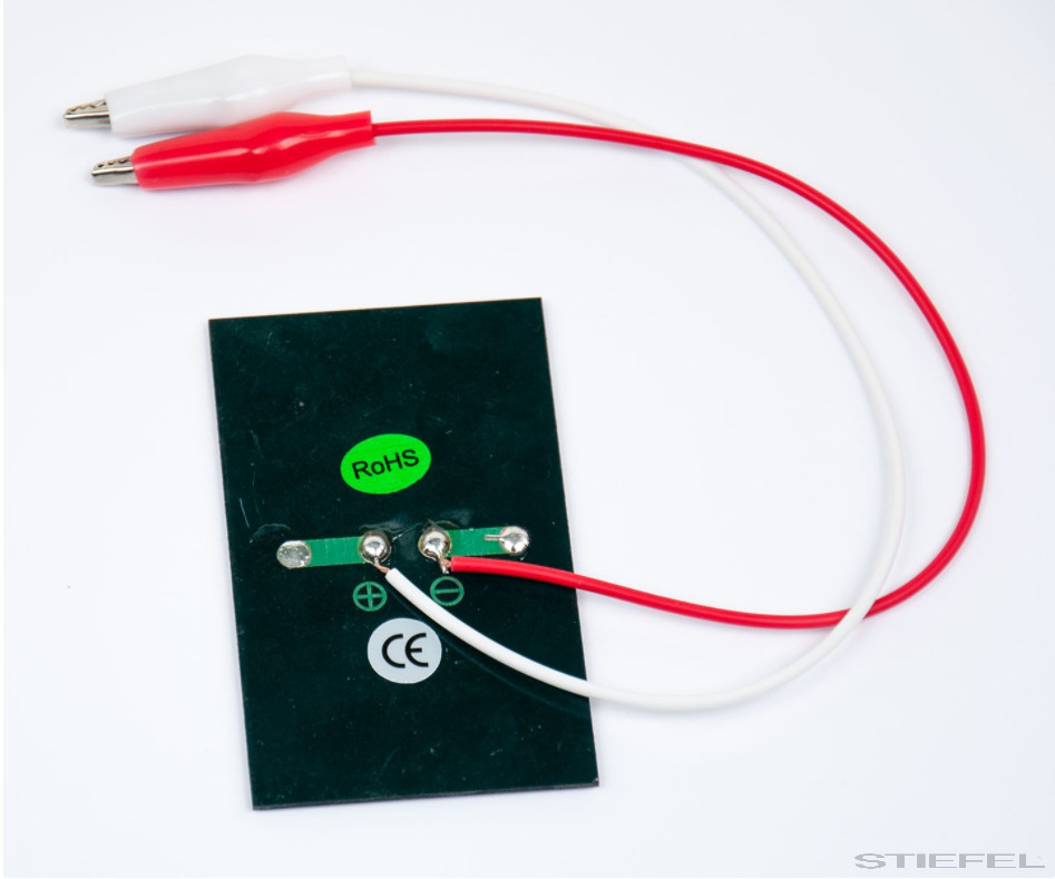 • Polikristályos napelem, tokozott, két kábellel, krokodil csipesszel.