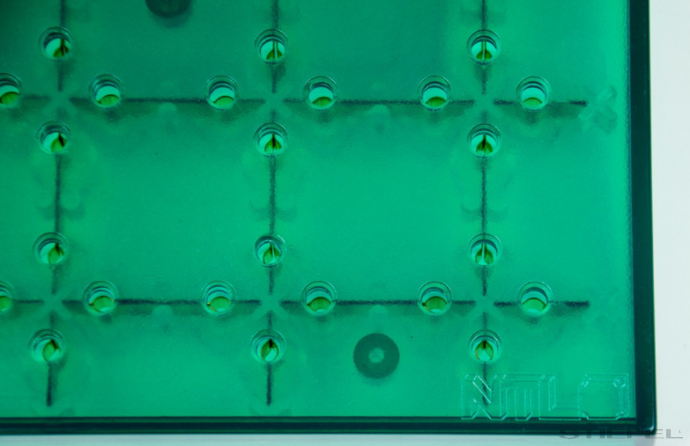• 35 aljzatcsoport, egyenként négy 4 mm-es aljzattal, amelyek egymástól 19 mm-re vannak elhelyezve.
